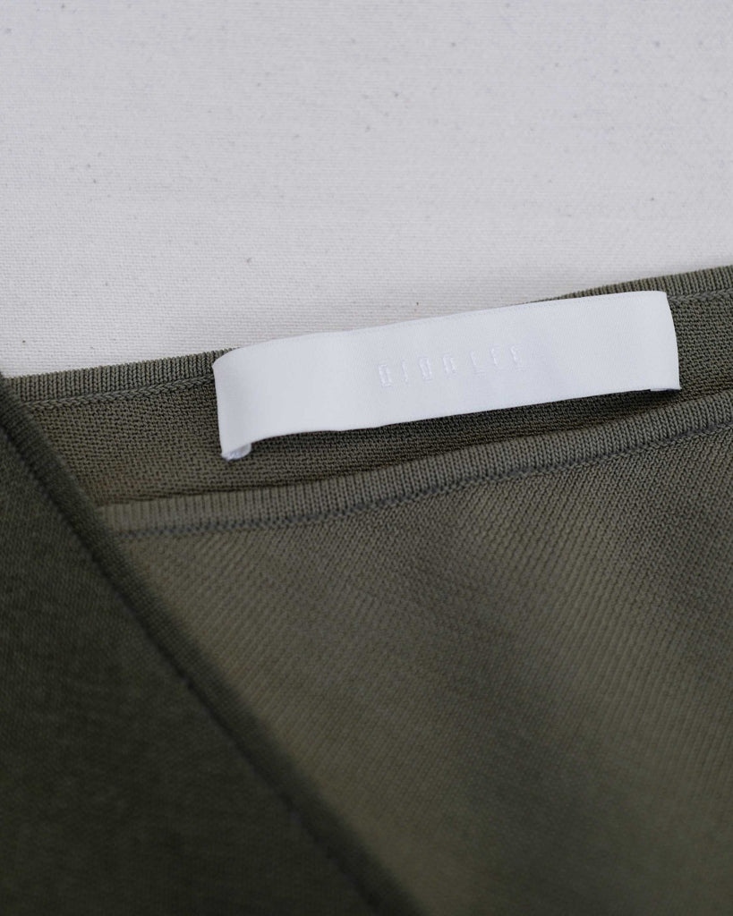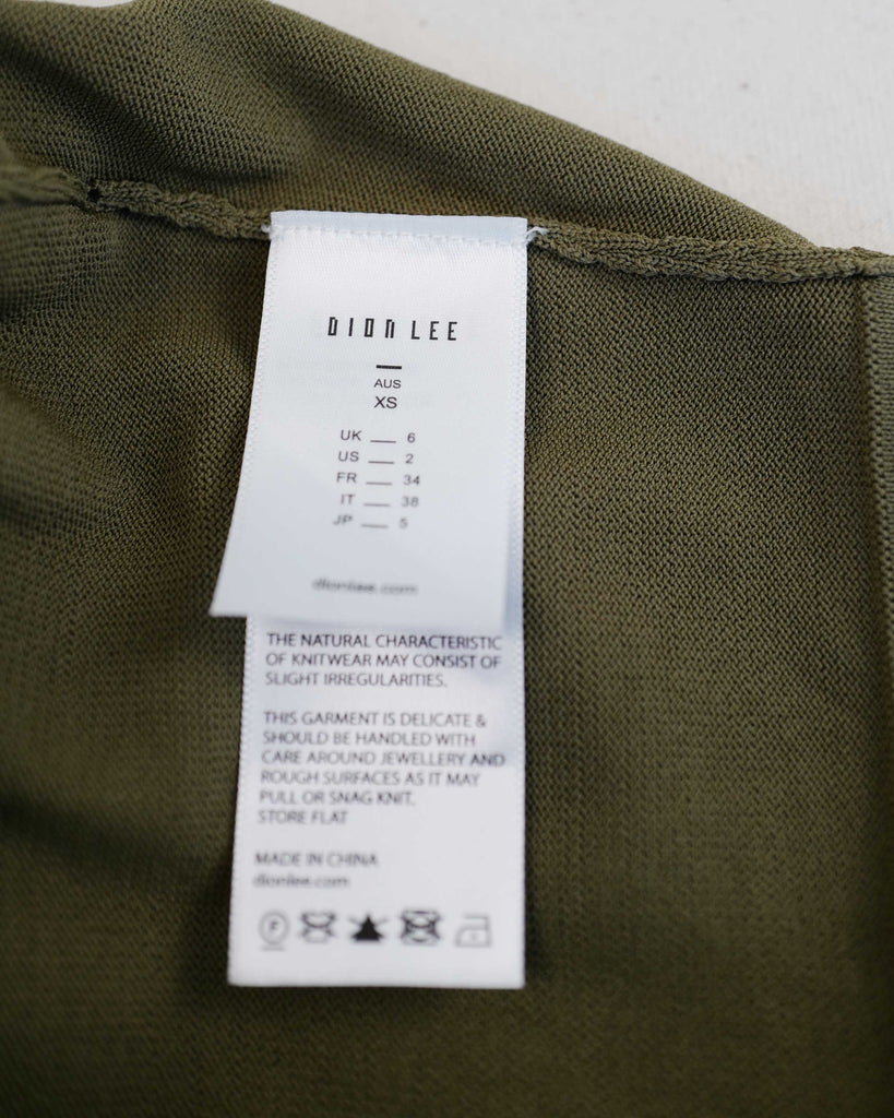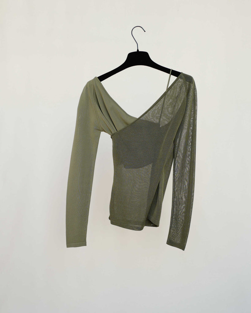 Kakhi, cropped long sleeve from Dion Lee. Wrap top consisting of two seperate one-shoulder tops. Can be worn together, or as two separate shirts (3-1).