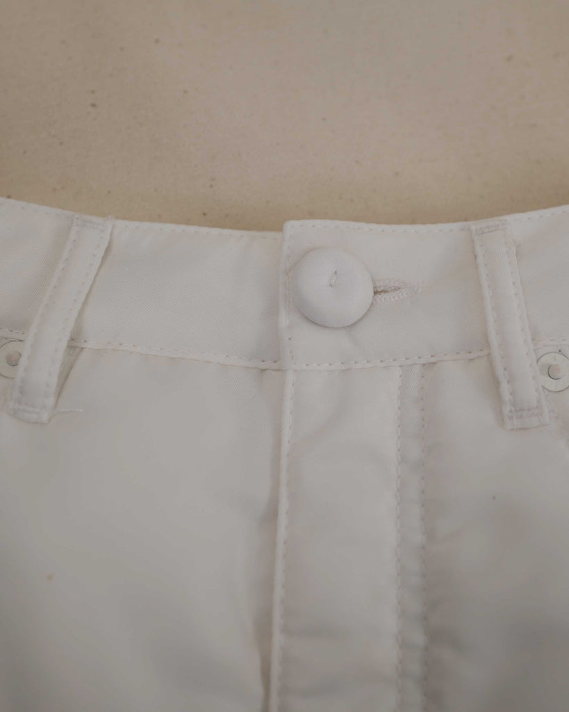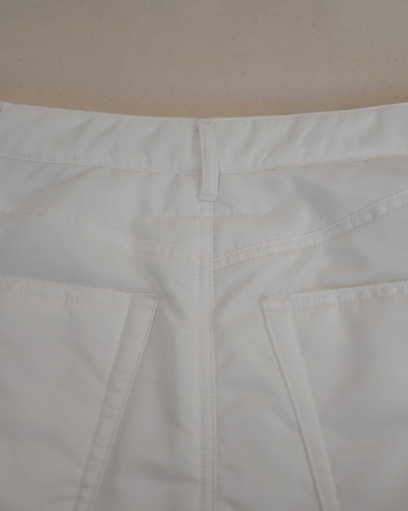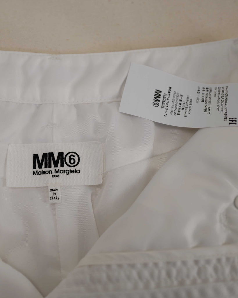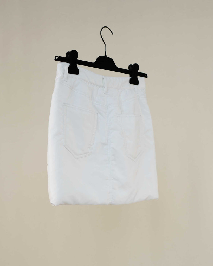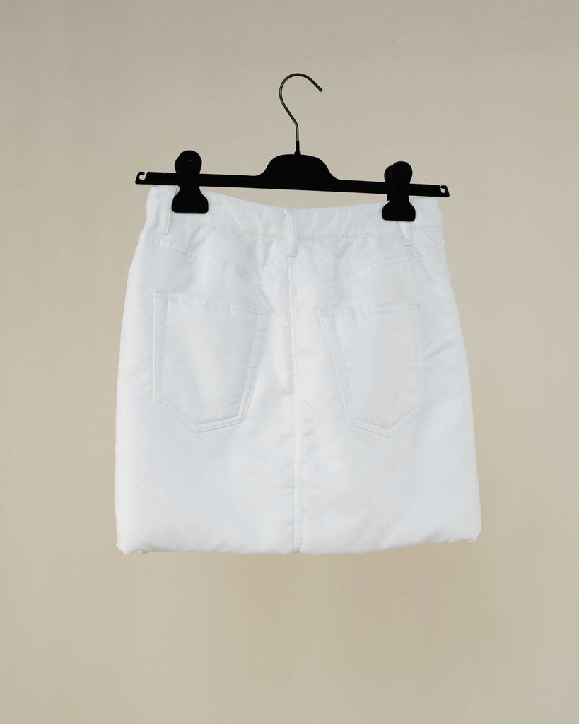 White padded Margiela MM6 skirt in 5 pocket model. Light padded polyester. Covered button.
