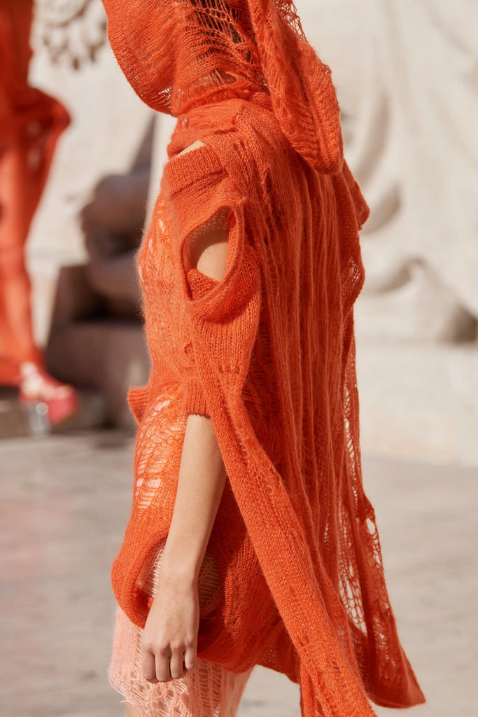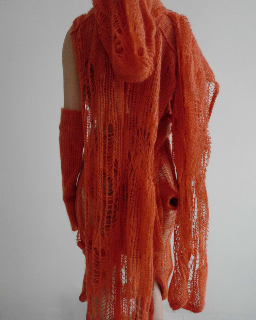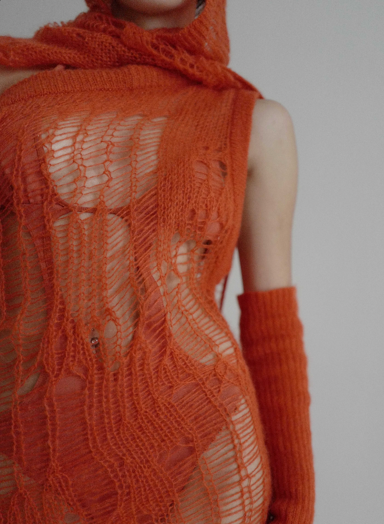 Please note that price only include the dress, similarly seen in pink on the run way. The hooded scarf, arm warmers and body is sold separately.