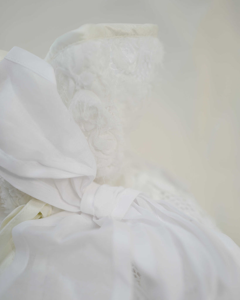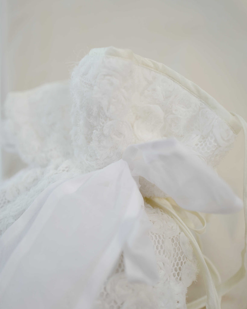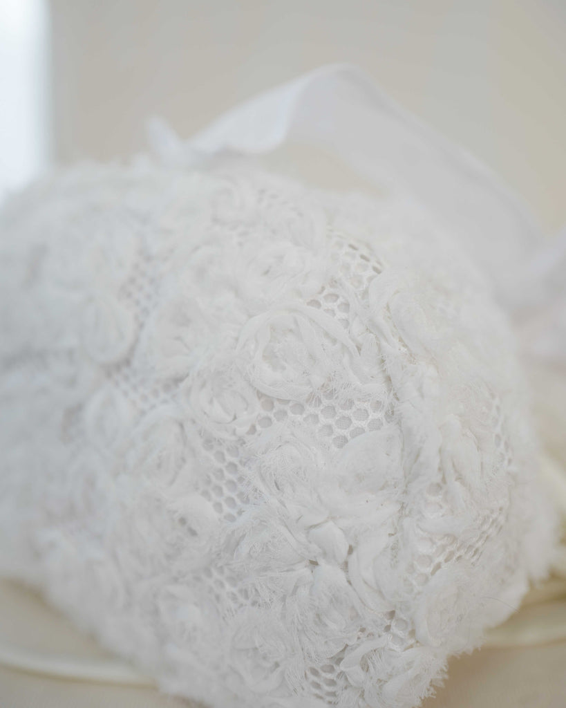 White lace pouch bag in white. Can be worn cross body with long strap or as. a clutch. Can be washed (P).