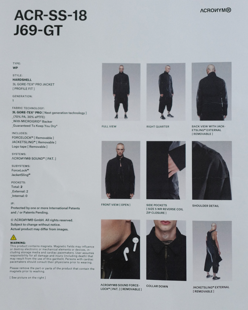 ACRONYM HARDSHELL GORE-TEX JACKET J69-GT