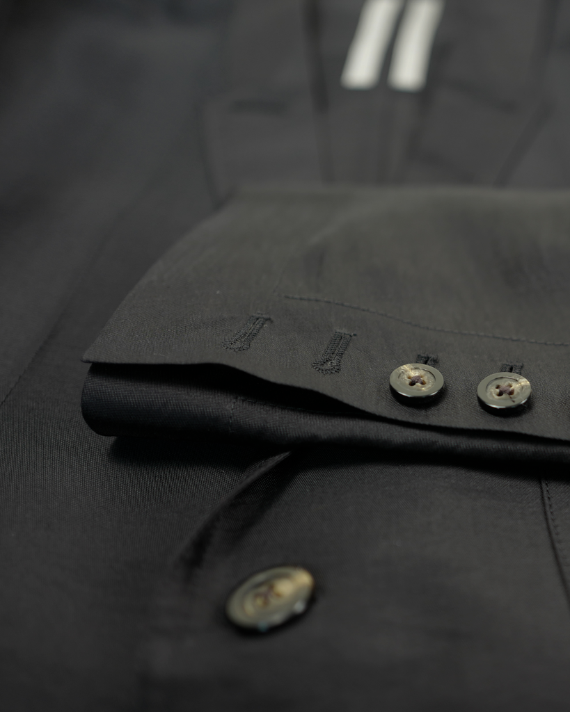 Black organza blazer from spring summer 2021 Phlegathon collection. Classic model, slightly see through.