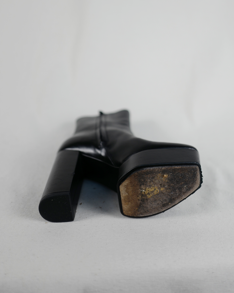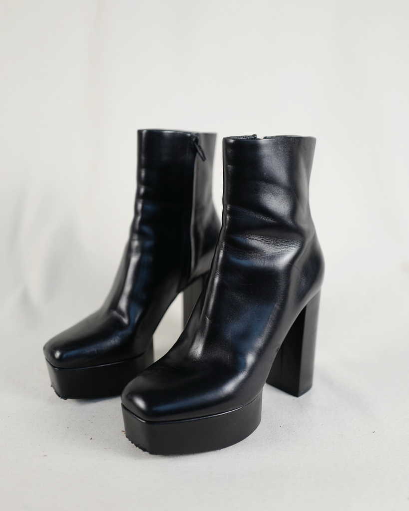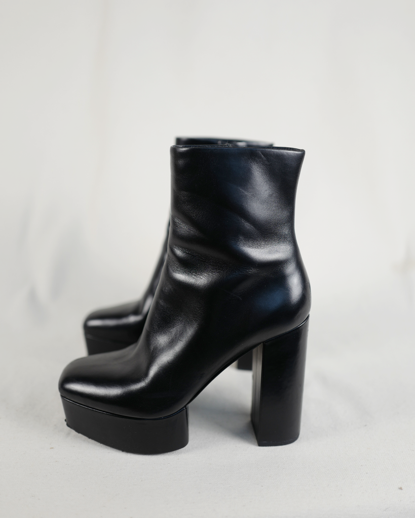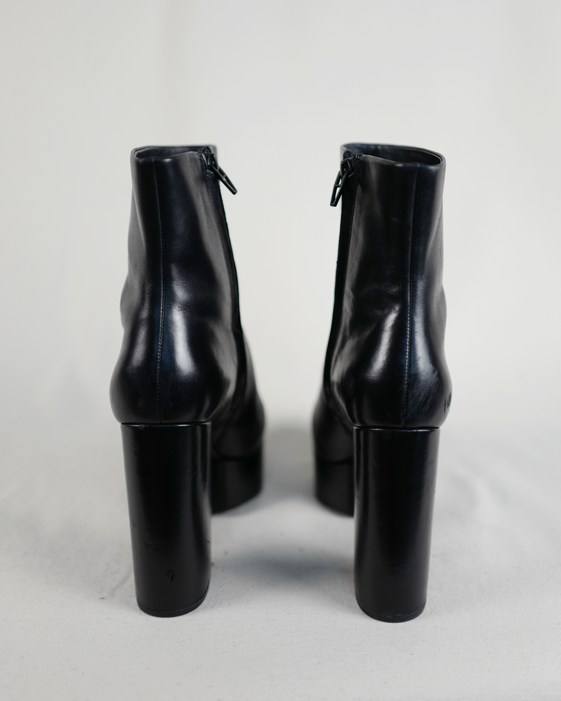 High heeled Alexander McQueen boots with platform. Black zipper on the inside of the ankle. Classic McQueen triangle zipper