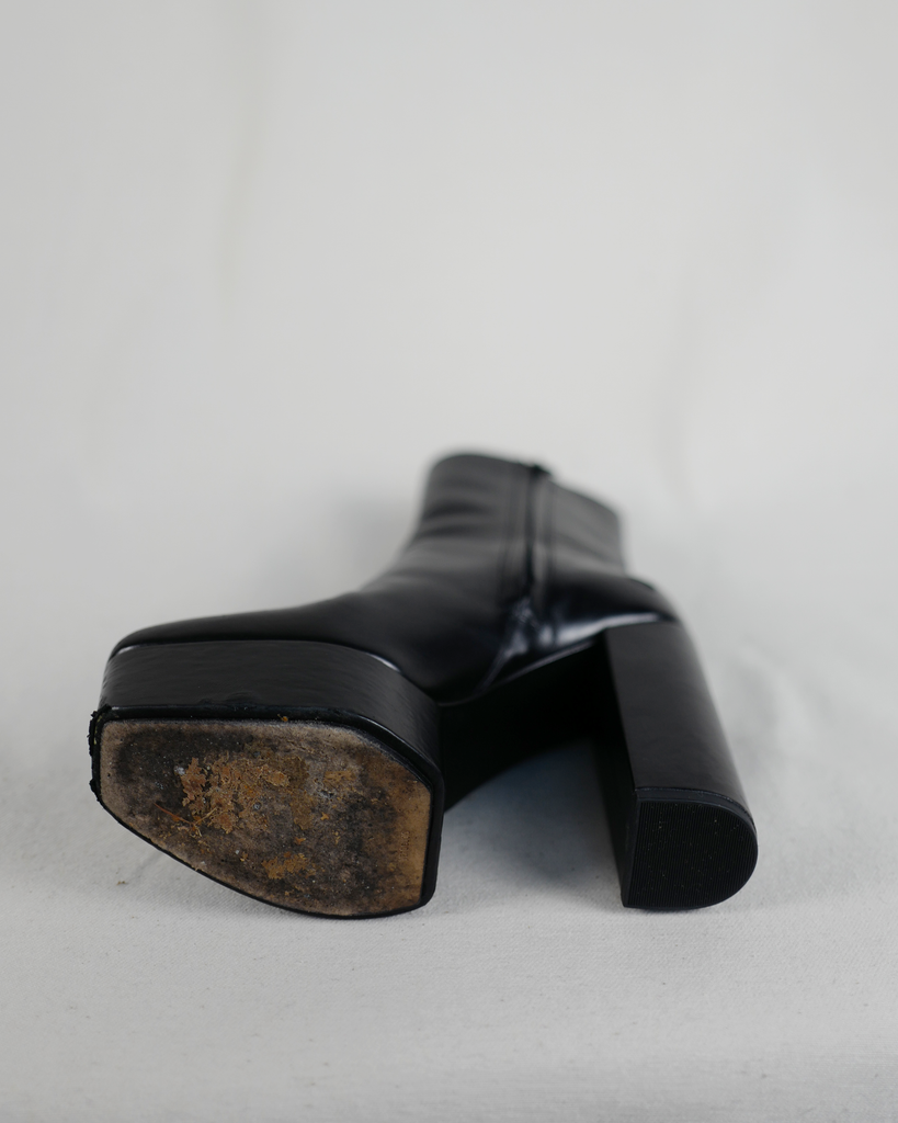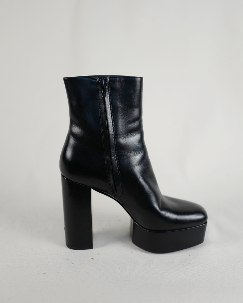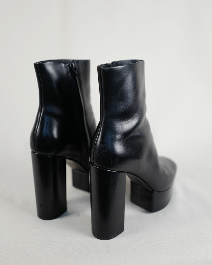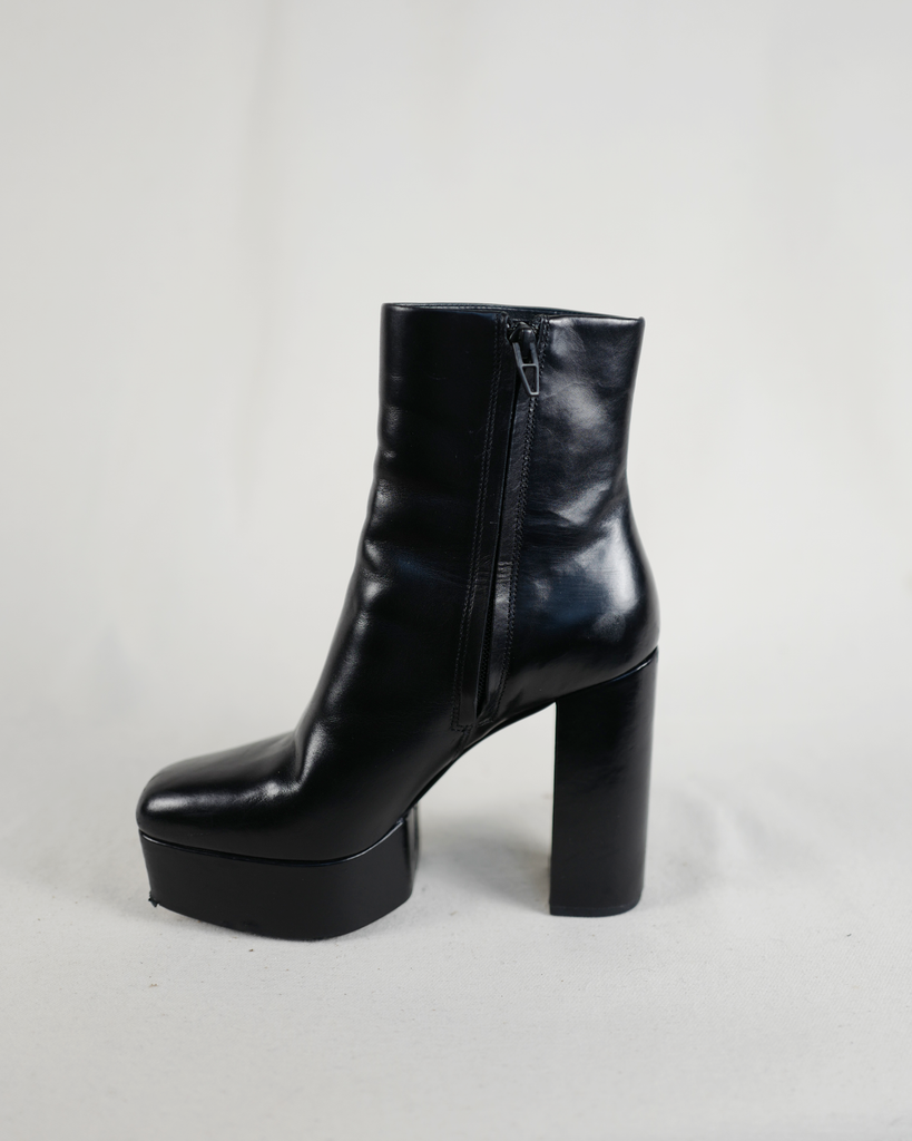 High heeled Alexander McQueen boots with platform. Black zipper on the inside of the ankle. Classic McQueen triangle zipper