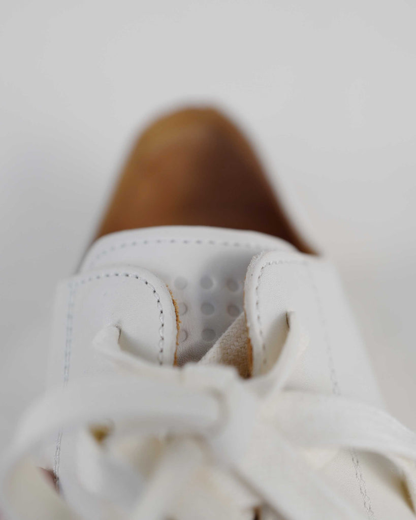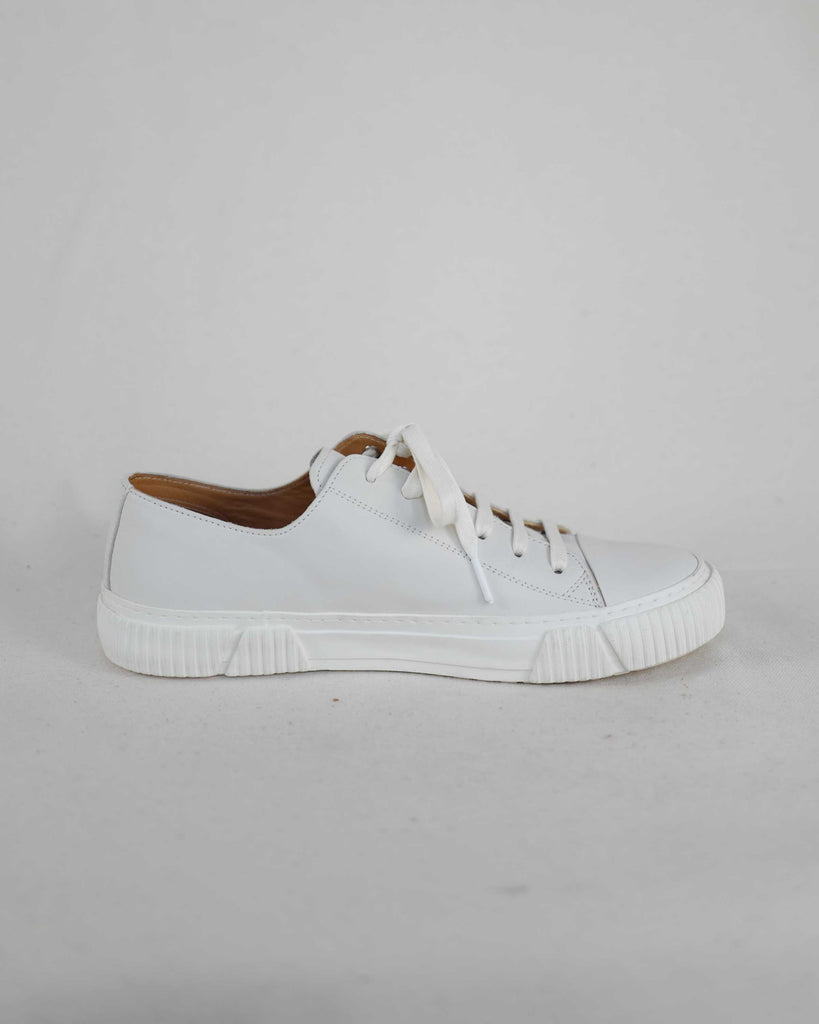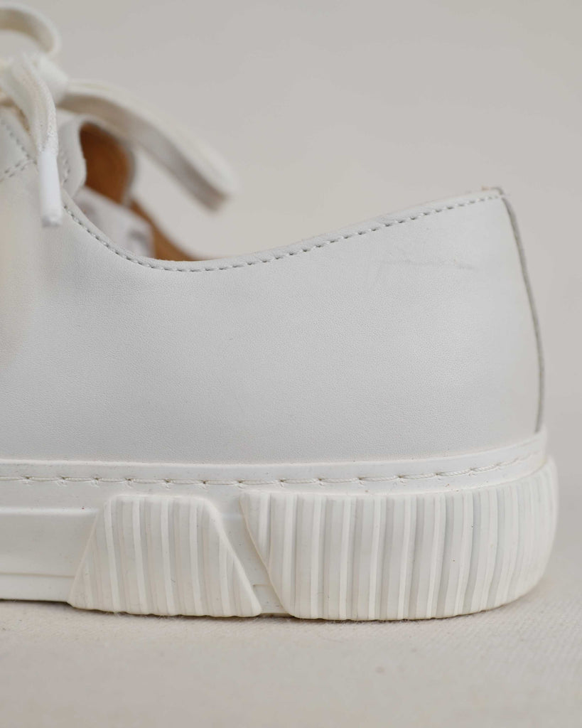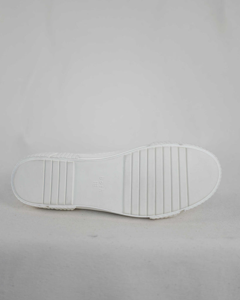 Cream white lower tennis shoes from Both. Classic model with Both logo embosed on shoe tongue. Leather innersole