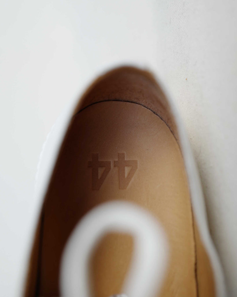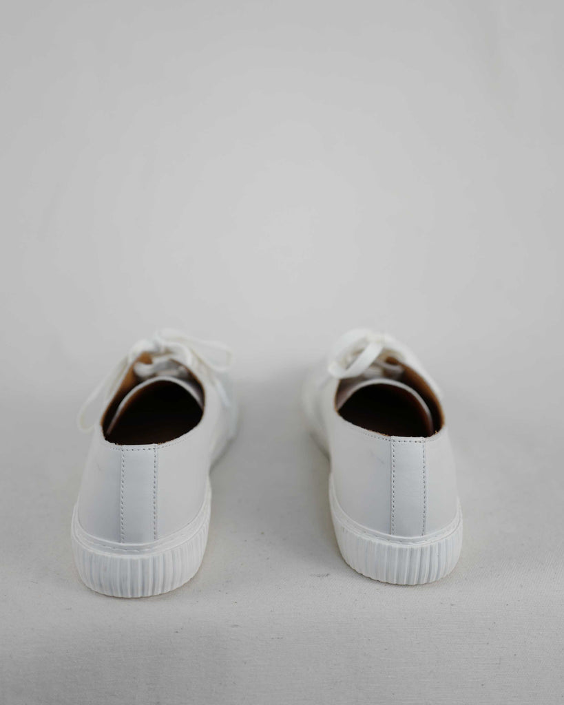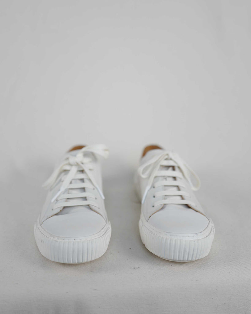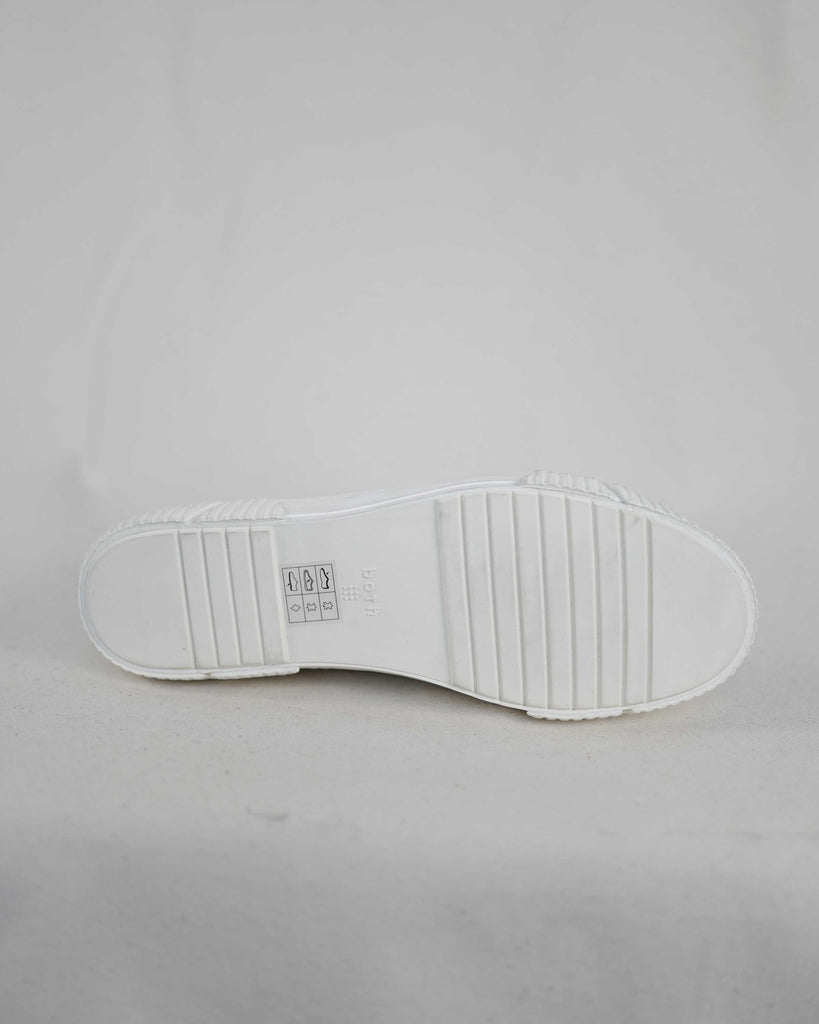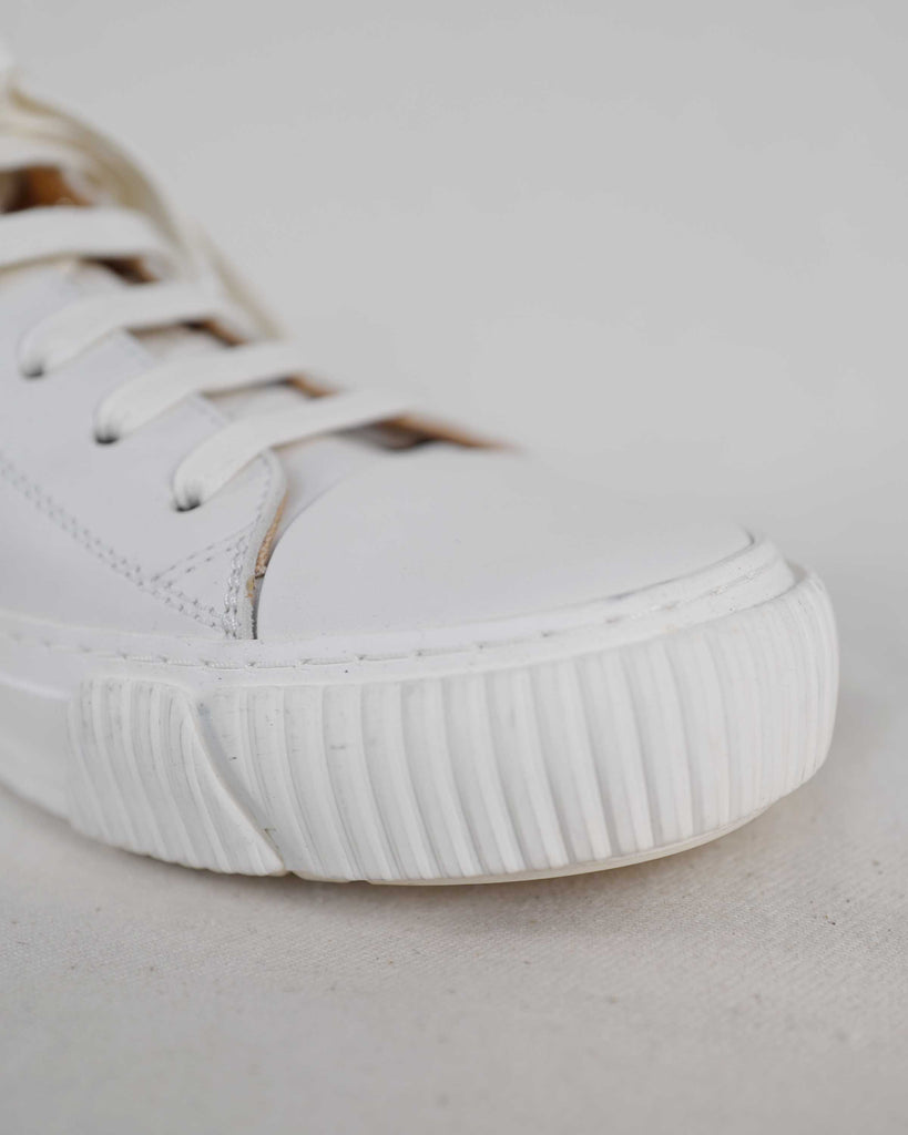 Cream white lower tennis shoes from Both. Classic model with Both logo embosed on shoe tongue. Leather innersole