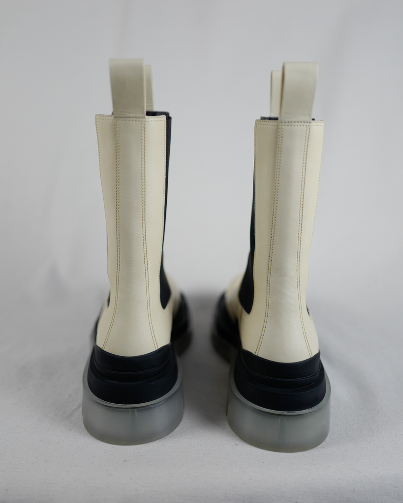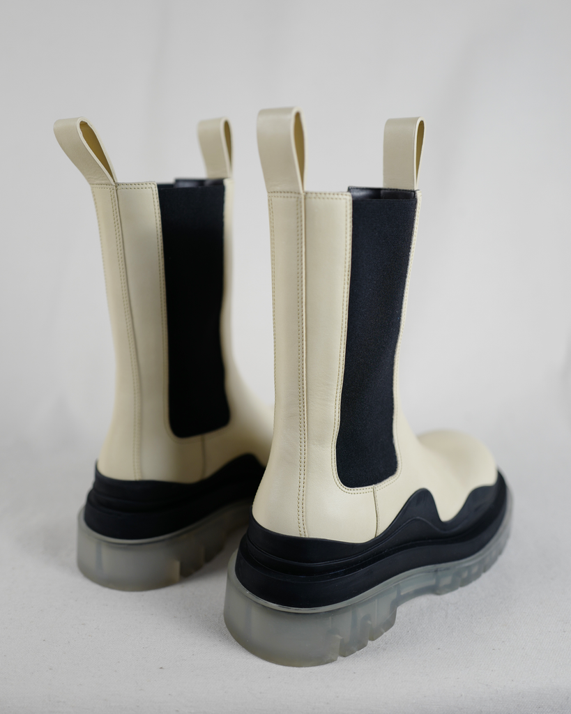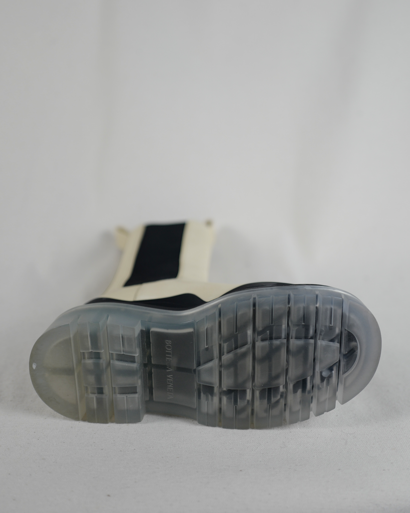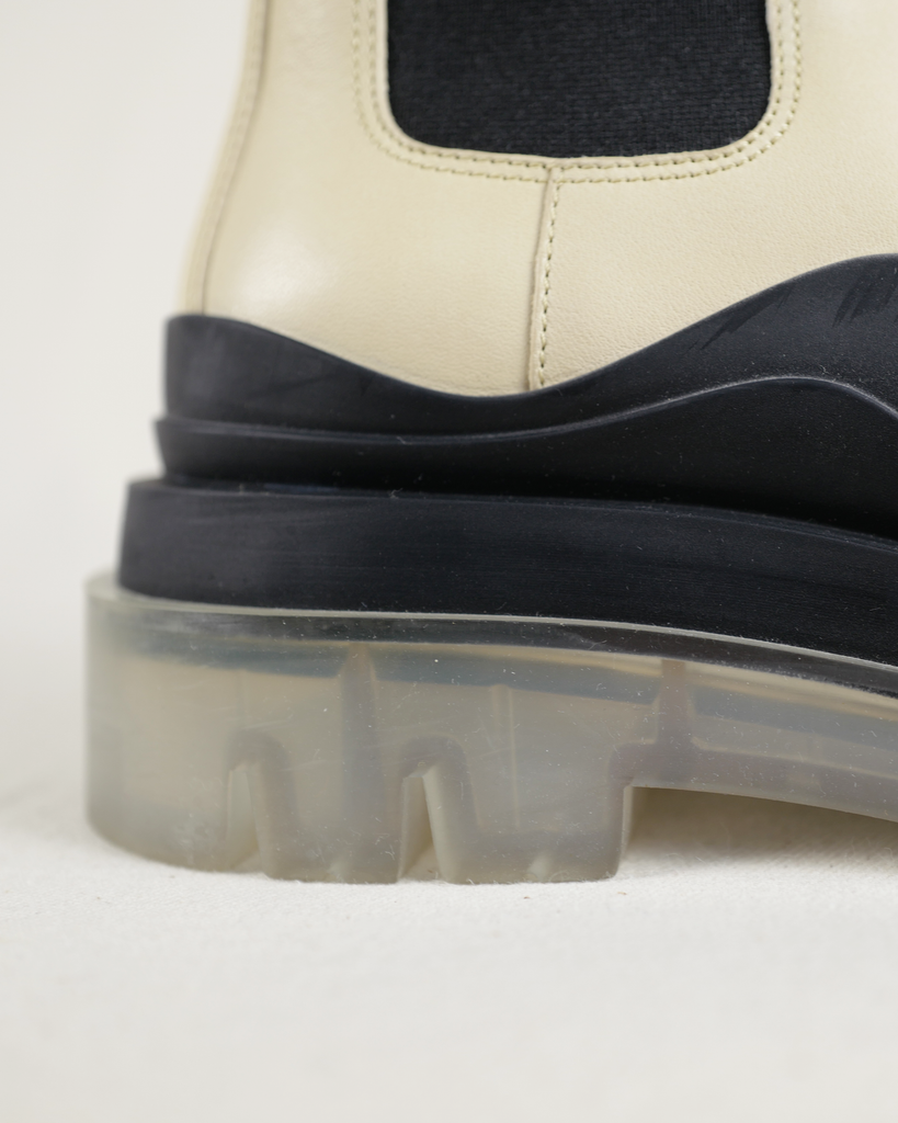 BOTTEGA VENETA TIRE CHELSEA BOOT SEA SALT/BLACK/TRASPARENT