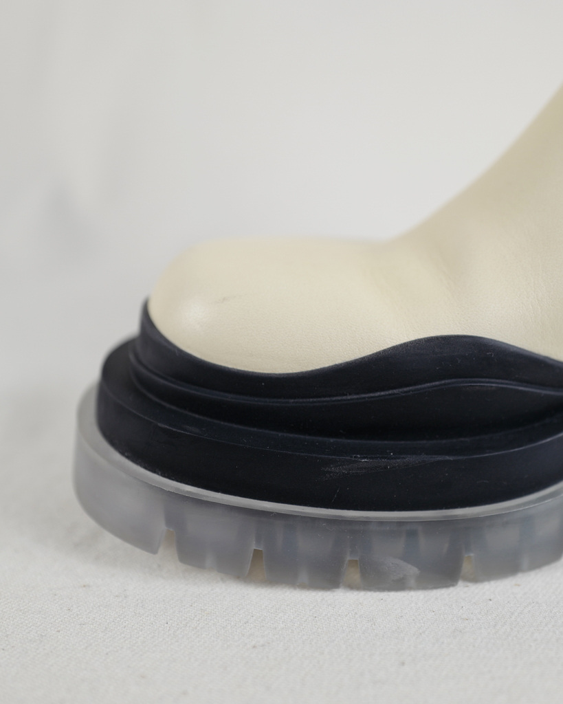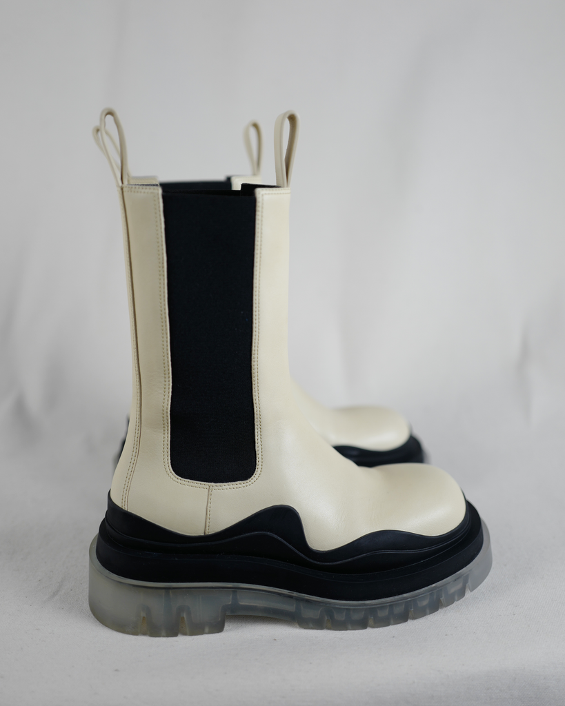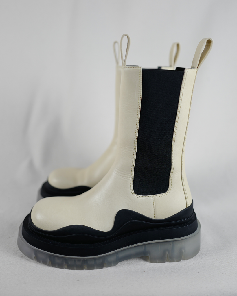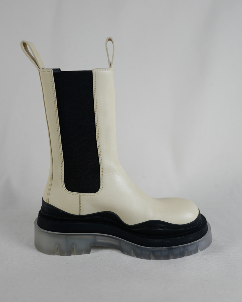 BOTTEGA VENETA TIRE CHELSEA BOOT SEA SALT/BLACK/TRASPARENT