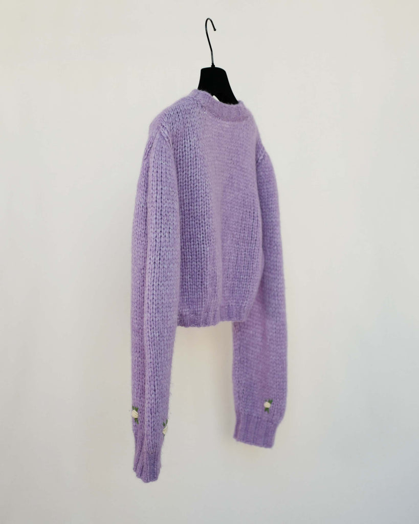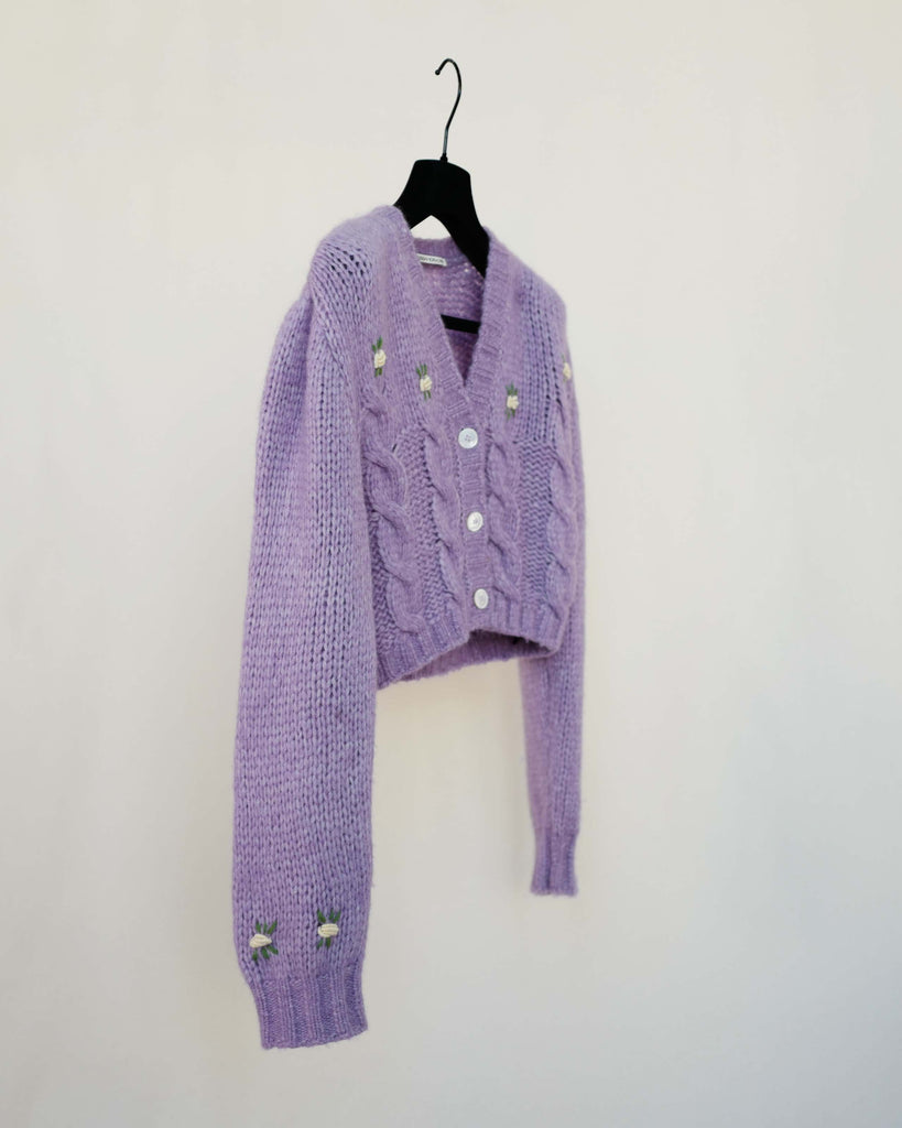 Beautiful Alessandra Rich cable knit cardigan in alpacka mix. Flower decor on sleeves and front.