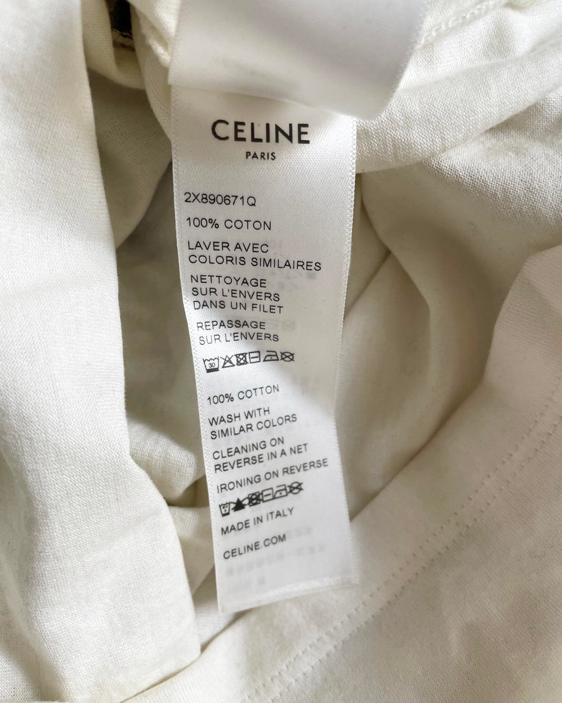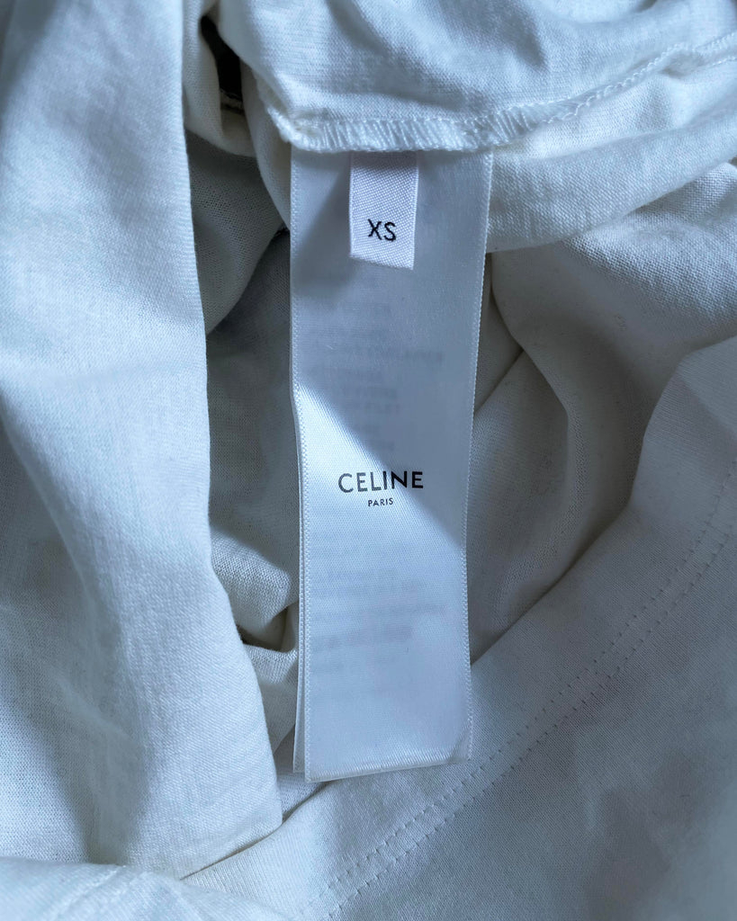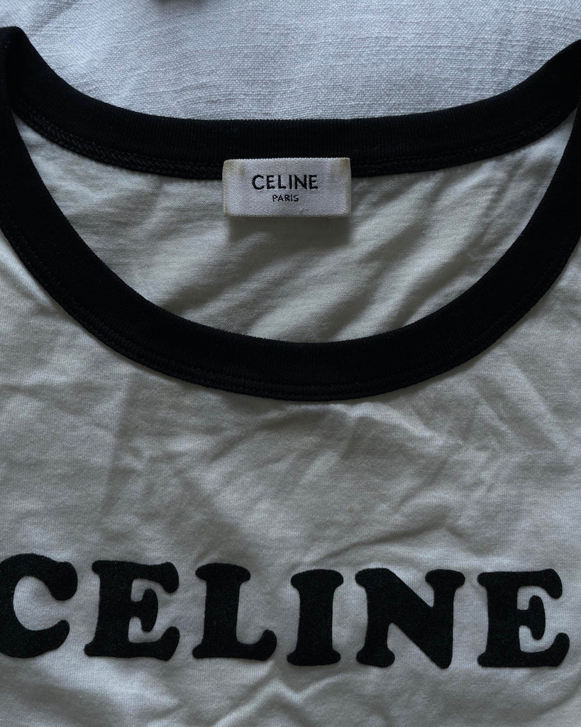White Celine cropped tshirt with Celine Paris logo and contrast details..