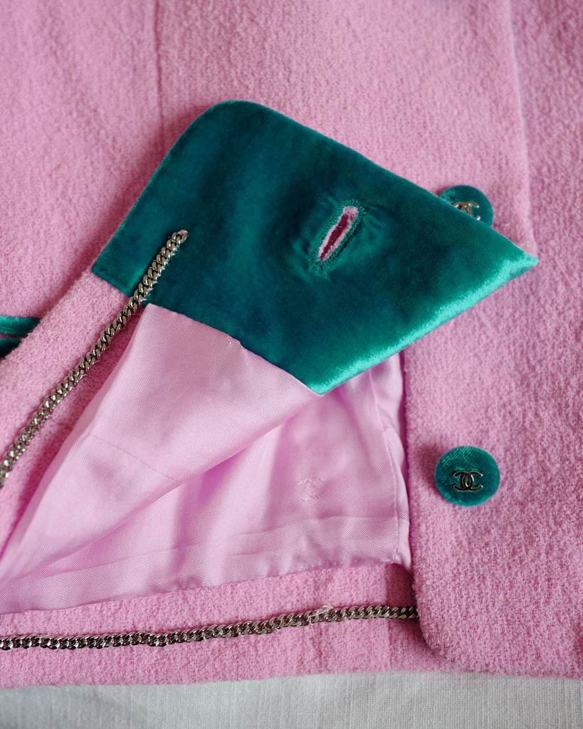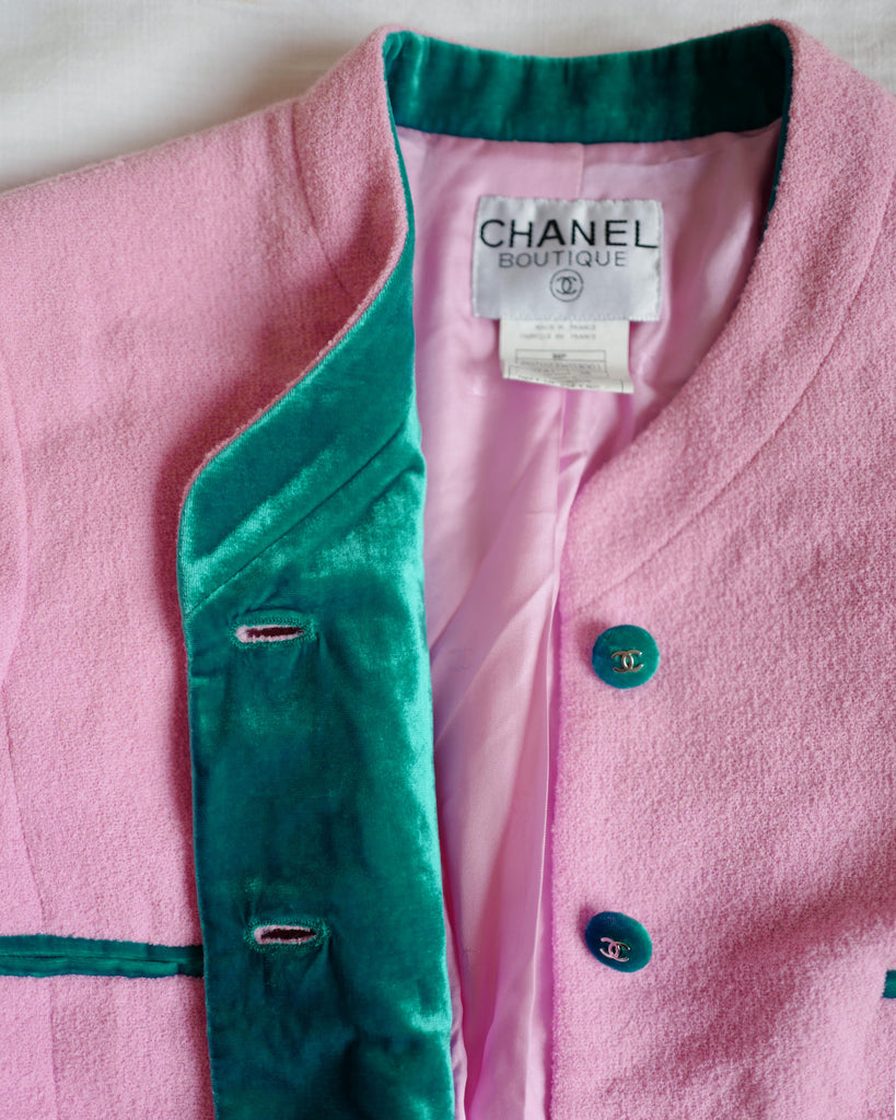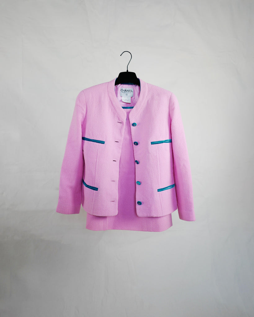 CHANEL PINK BLAZER SKIRT SET 96P