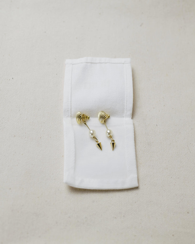 Pair of Christian Dior earrings. Matt golden seashells with spike and