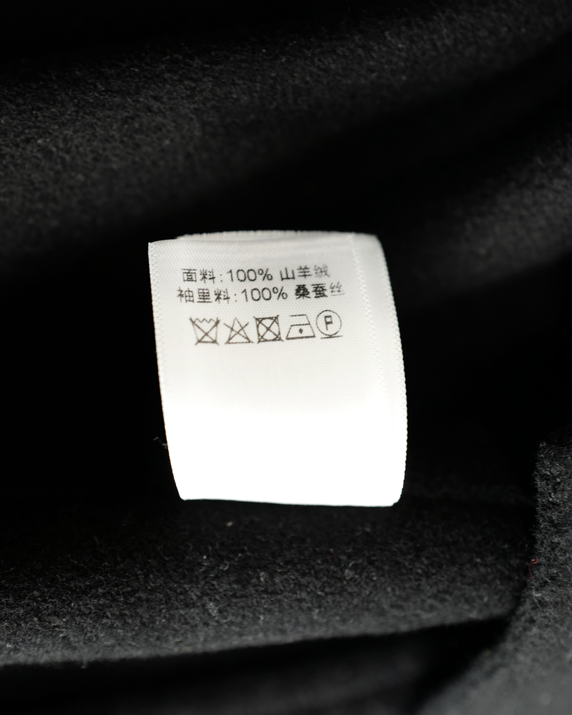 100% cashmere, sleeves lining 100% mulberry silk