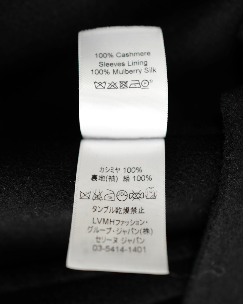 Black classic Céline Phoebe Philo cashmere coat from "Old Celiné". Sleeves are lined in silk.