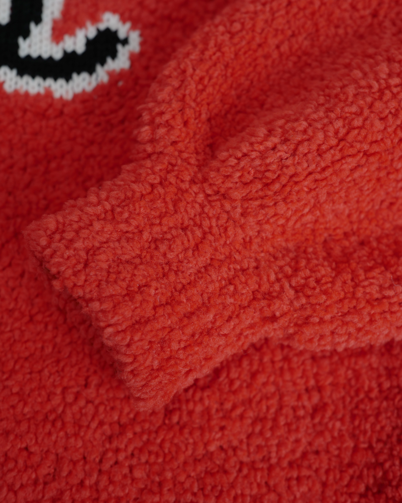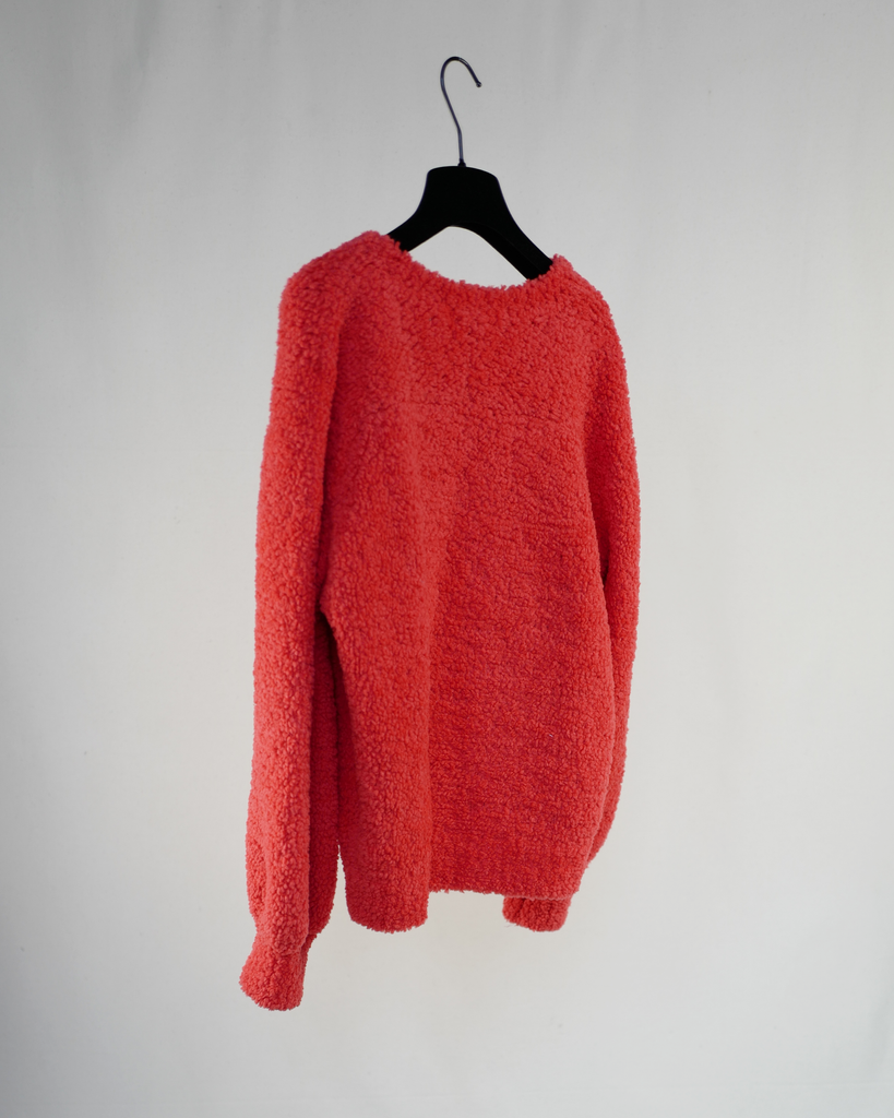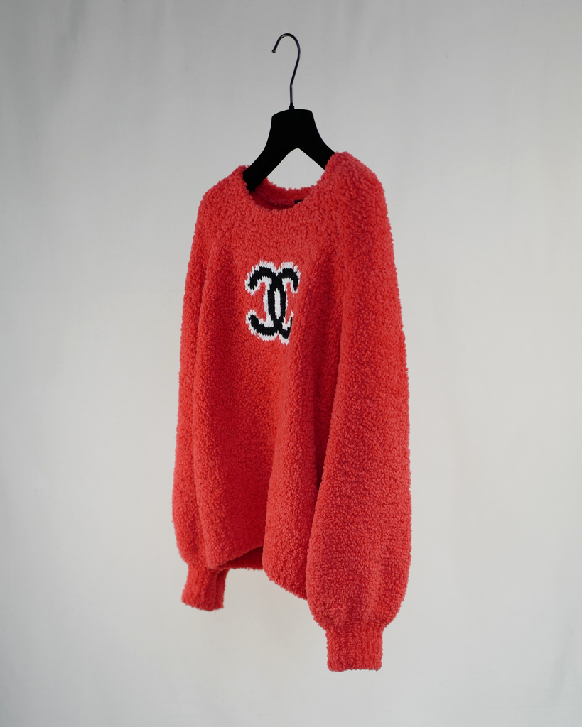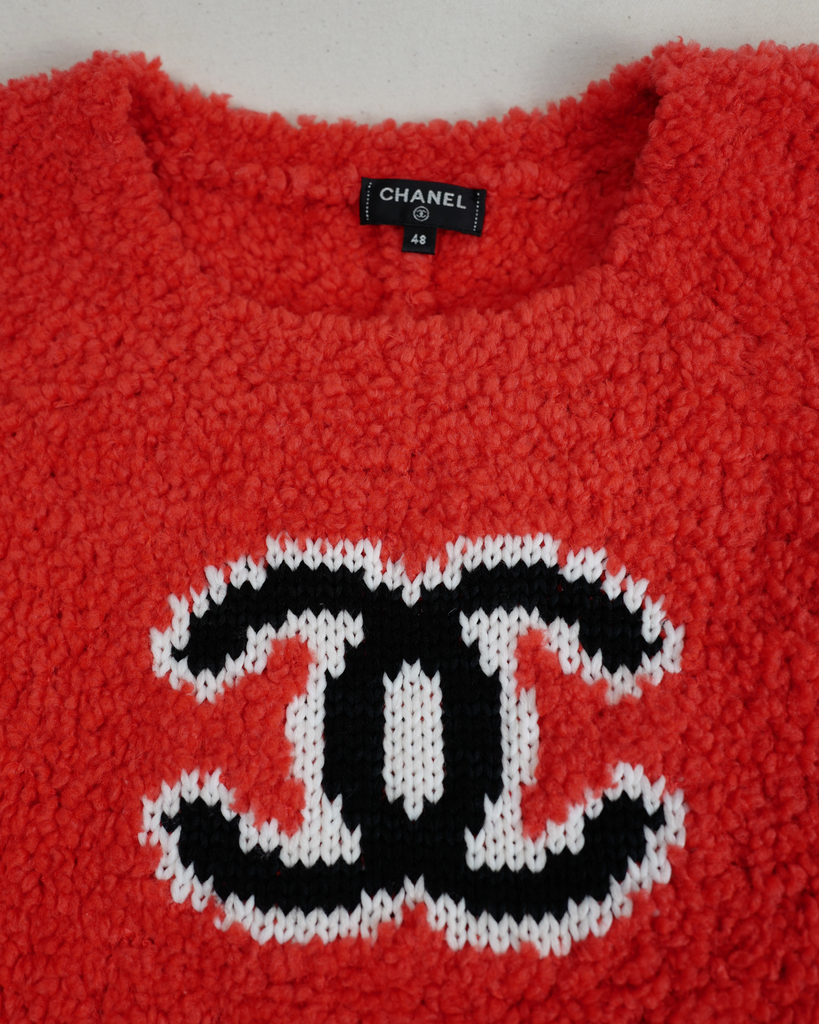 Iconic red Chanel knit from Karl Lagerfeld's fall/winter 2019 in cashmere and wool mix. Made in Italy. Seen on the runway as look 48 (last image, credit Chanel).