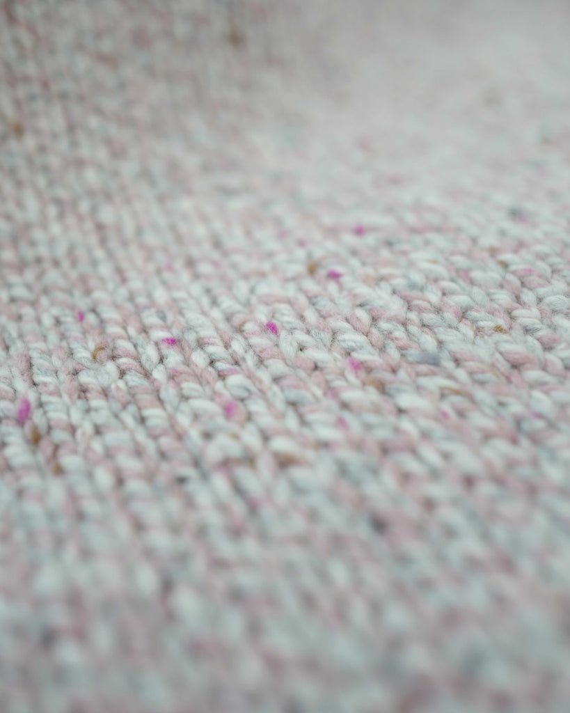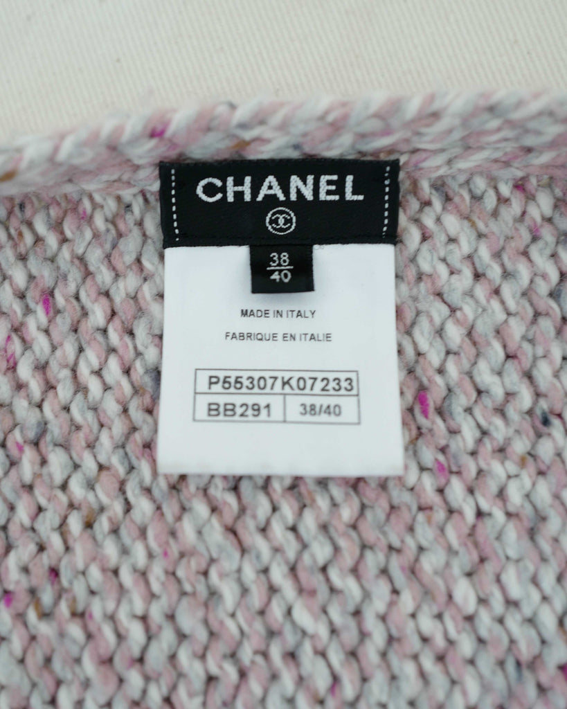 Powder pink/lilac knitted Chanel bolero with eyelets. in different shapes and colours on sleeves.
