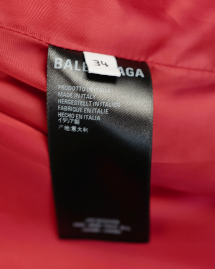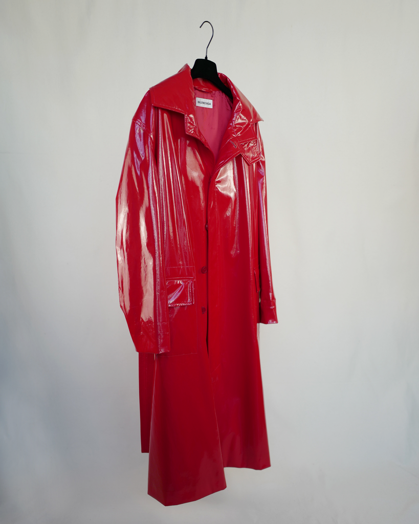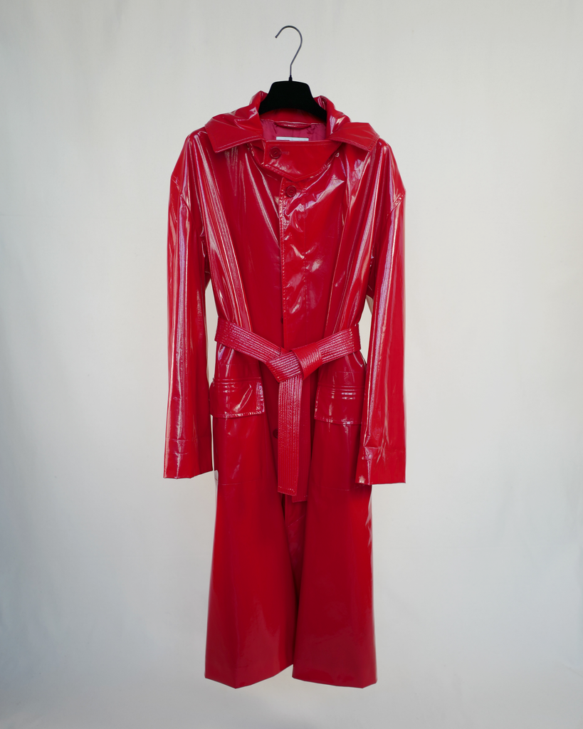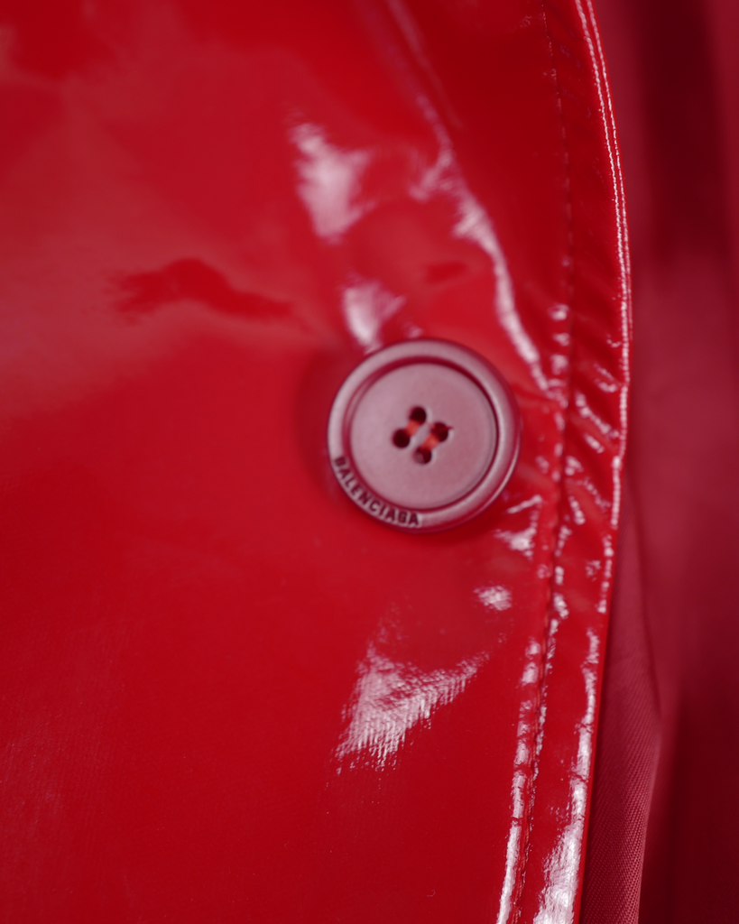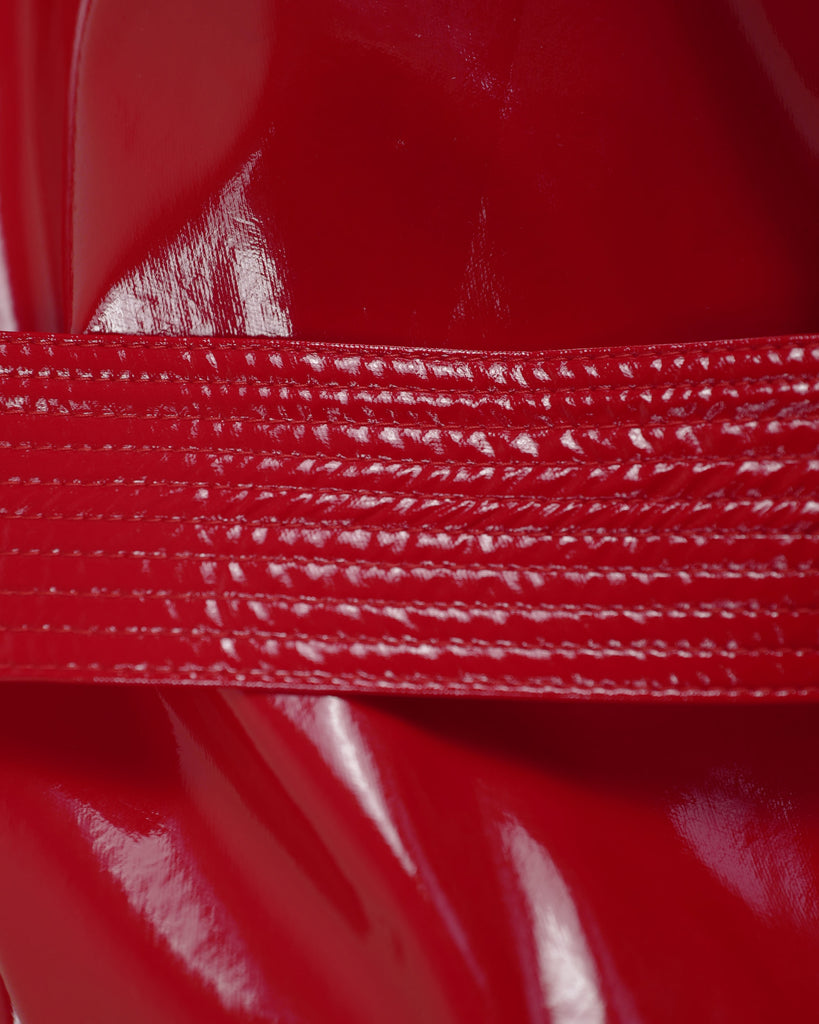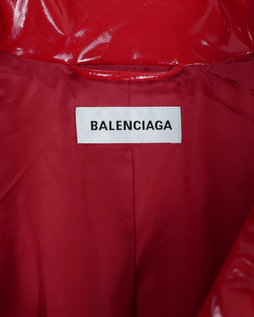 BALENCIAGA HIGH NECK BELTED VINYL COAT RED